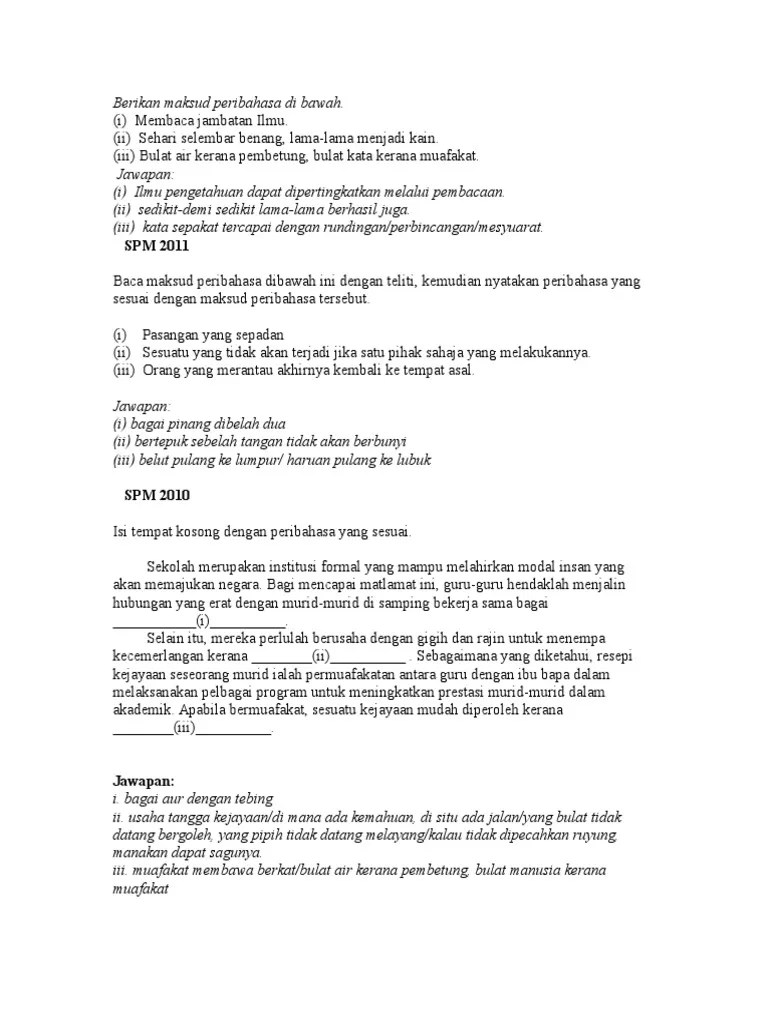 Senarai peribahasa melayu serta maksudnya. 'syurga itu terletak di bawah telapak kaki ibu'. Ilmu pengetahuan dapat dipertingkatkan melalui pembacaan. Entah siapa yang reka peribahasa ini, saya pun tak tahu. Terdapat beberapa bahan bacaan yang sesuai dijadikan rujukan seperti surat khabar, .